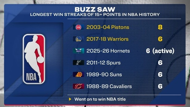3月5日讯 NBA常规赛,黄蜂118-89客场大胜凯尔特人。据统计,黄蜂过去19场比赛赢下其中16场,目前已经连续6场至少赢下15分,自2017-18赛季勇士以来最长,也是并列历史第二长,最长为8连胜(2003-04赛季活塞)。